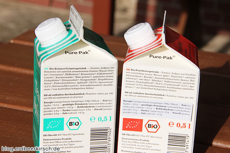 Zutaten: Aufguss aus Früchten mit natürlichem Aroma (Wasser, Apfel, Hagebutte, schwarze Johannisbeere, Karotte, Ananasfruchtgranulat (Ananas, Maltodextrin), rote Beete, Hibiskus, Süßholzwurzel, natürliche Aromen), Granatapfelsaft (10,2%), Cranberrysaft (3,3%), Agavensirup (3,3%), Antioxidationsmittel: Ascorbinsäure.Maybe Baby hat eine goldene Farbe mit einem leichten Rotstich und riecht fruchtig. Im Geschmack kommen die verschiedenen Früchte gut durch, ich kann aber leider gar nicht sagen welche Frucht überwiegt. Der Tee ist erfrischend lecker und schmeckt heiß und kalt. Auch Maybe Baby hat einen zunächst ungewöhnlichen Geschmack, der nach den ersten Schlucken jedoch vergeht. Ich persönlich finde ihn leckerer als Team Spirit (ich bin ja eh ein Früchtefan).